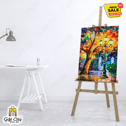 Street Light View Palette Knife Canvas Painting Wall Hanging - Gift City