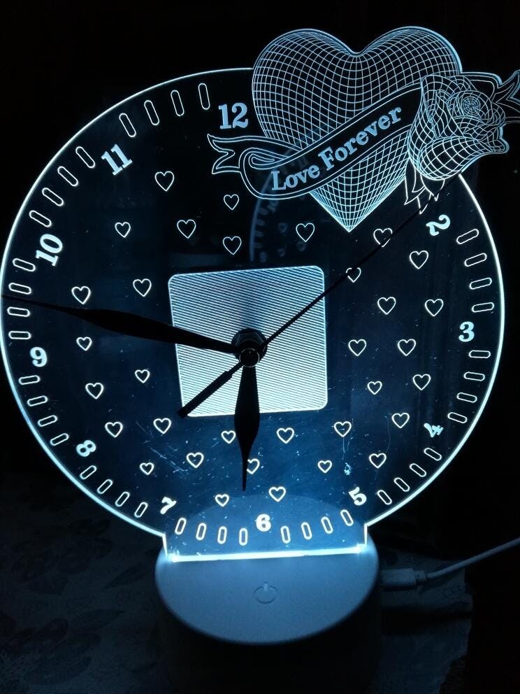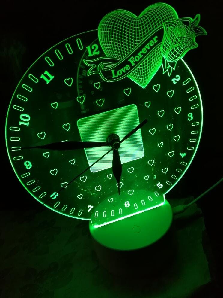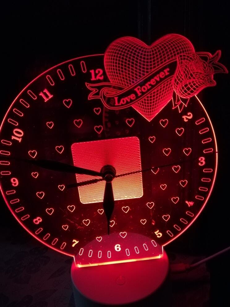 Customizable 3 Color 3D Acrylic Romantic Night Led Table Clock Lamp - Gift City