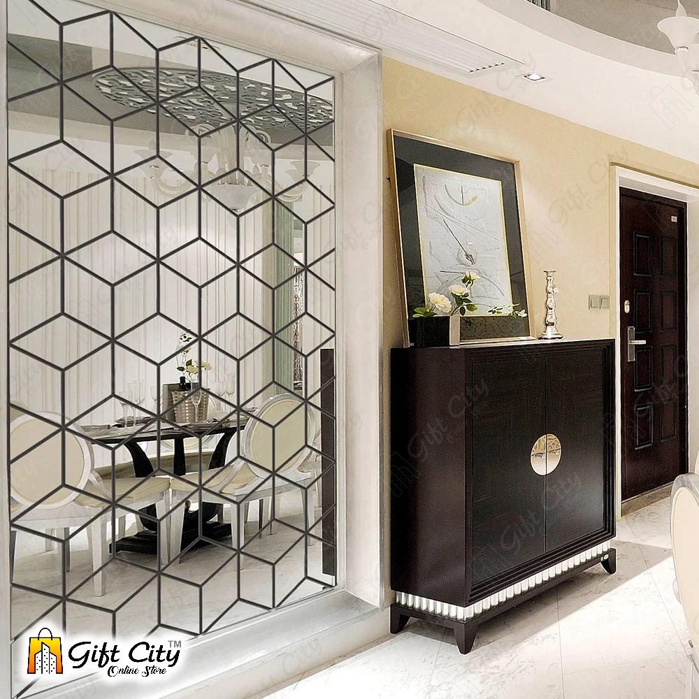 3D Rhombus Triangle Golden Acrylic Mirror Wall Art Stickers - Gift City