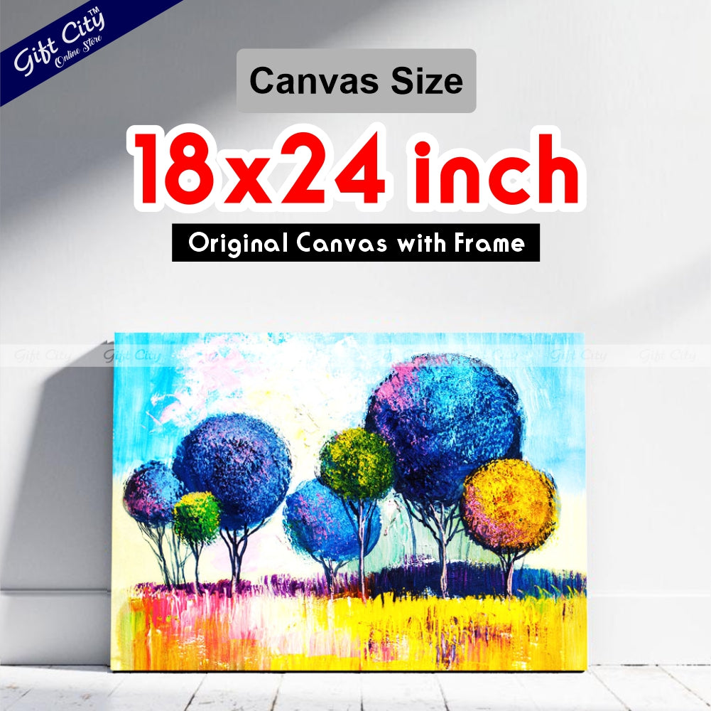 A Beautiful Non-Real View Of Abstract Rainbow Trees Painting From Gift City Is Now Available On Our Online Store With Three Different Sizes And Prices.