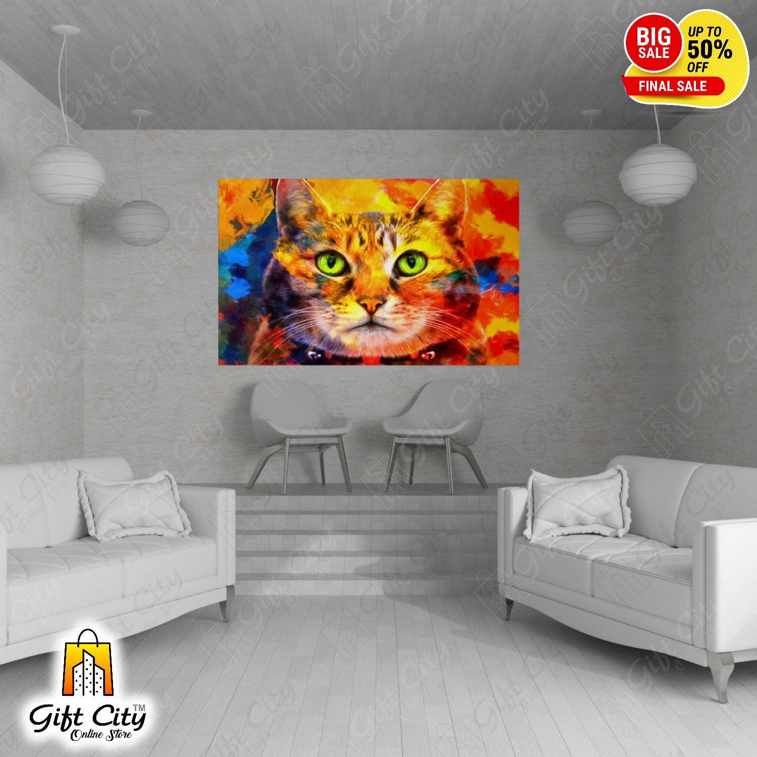 Cat Face Canvas Painting Digital Art for Home Decor - Gift City