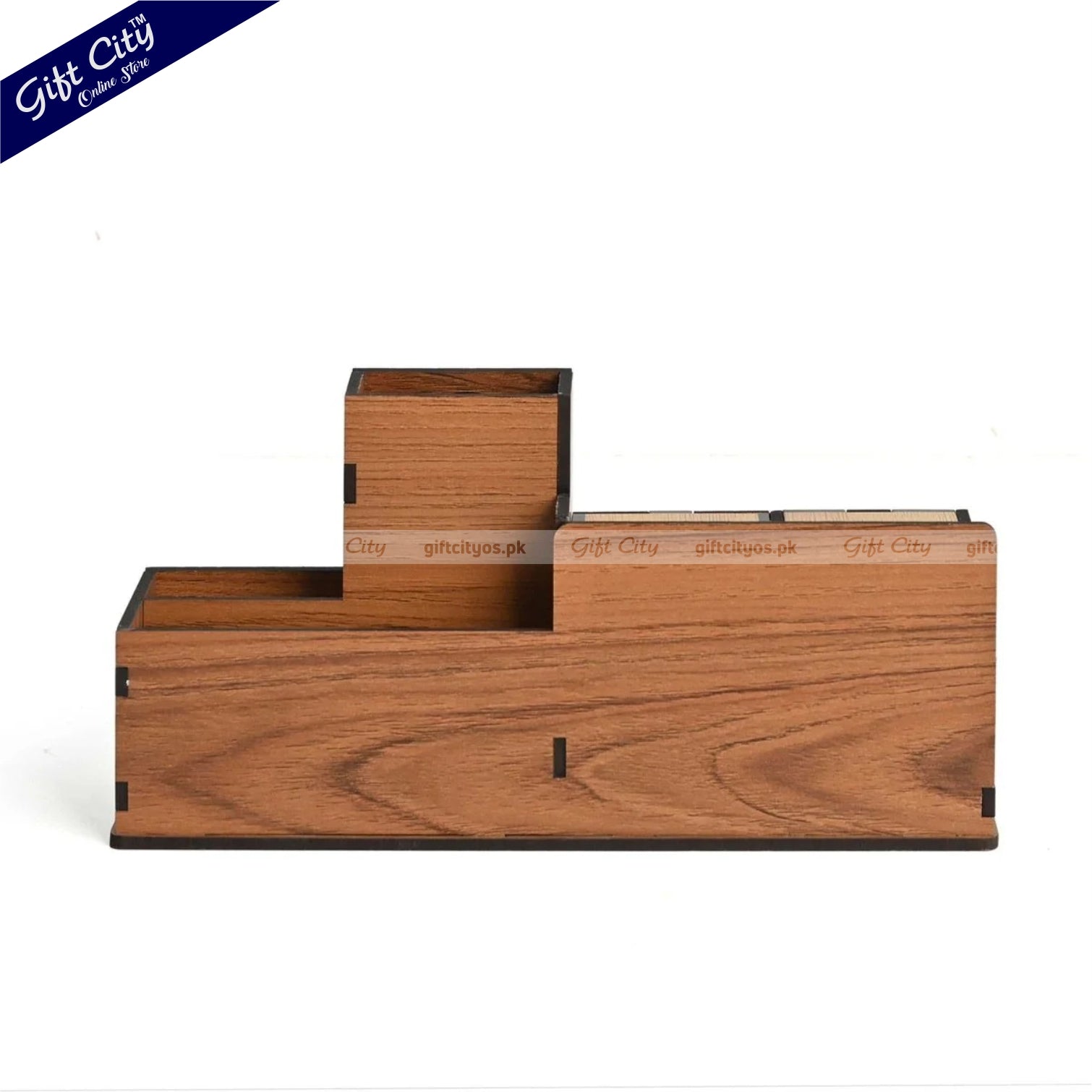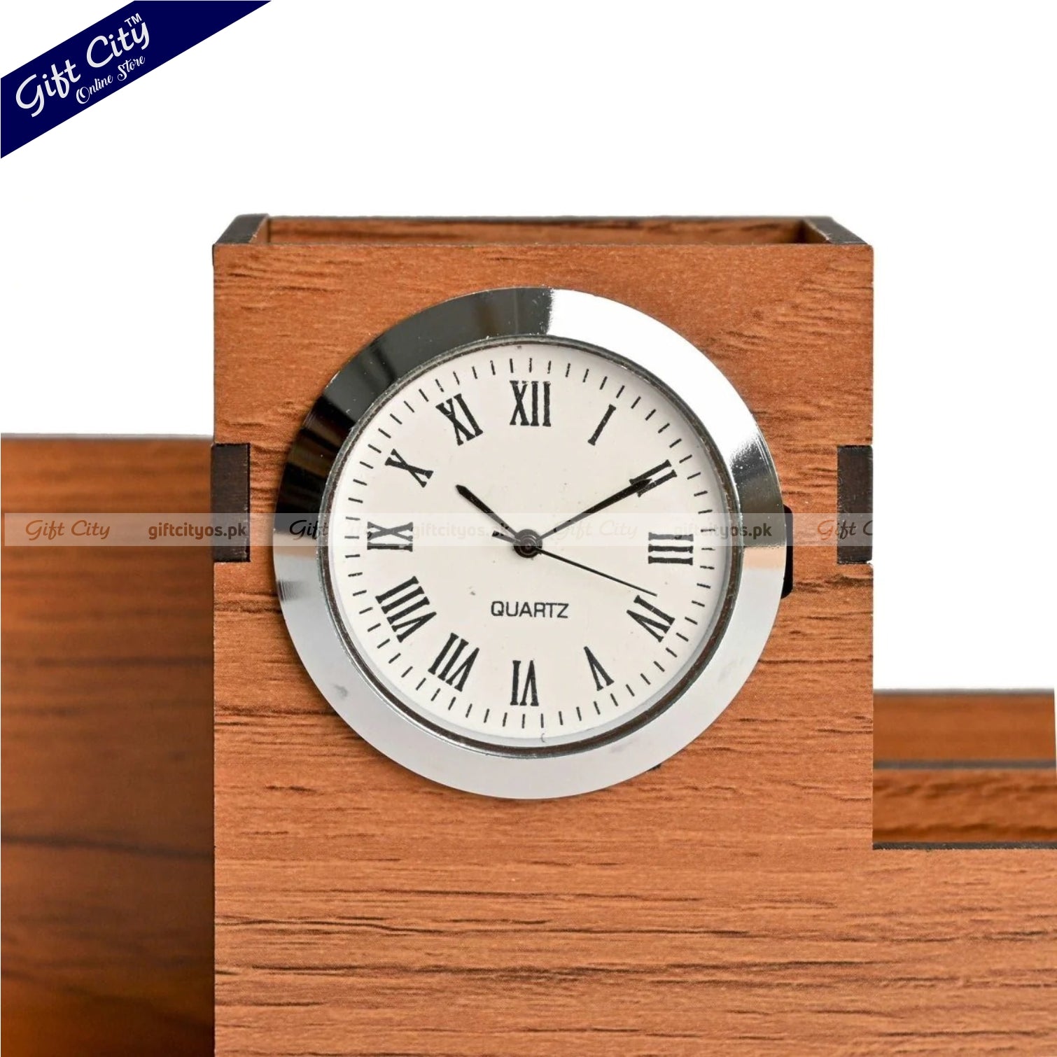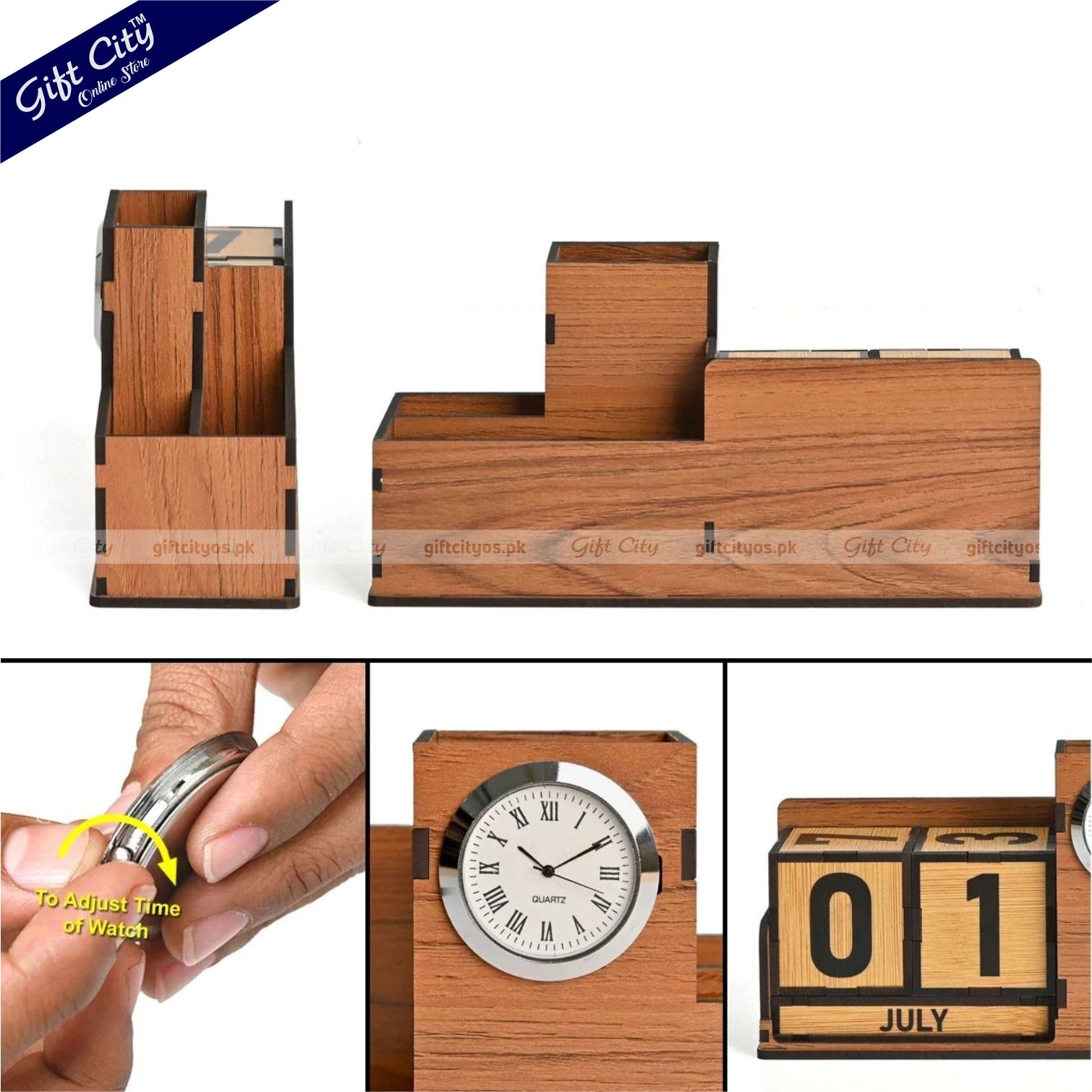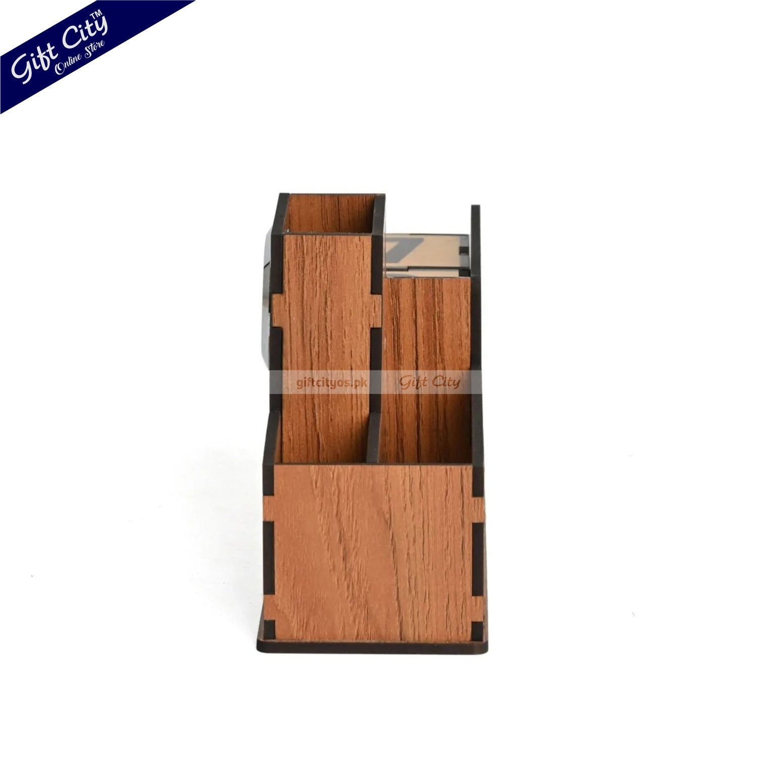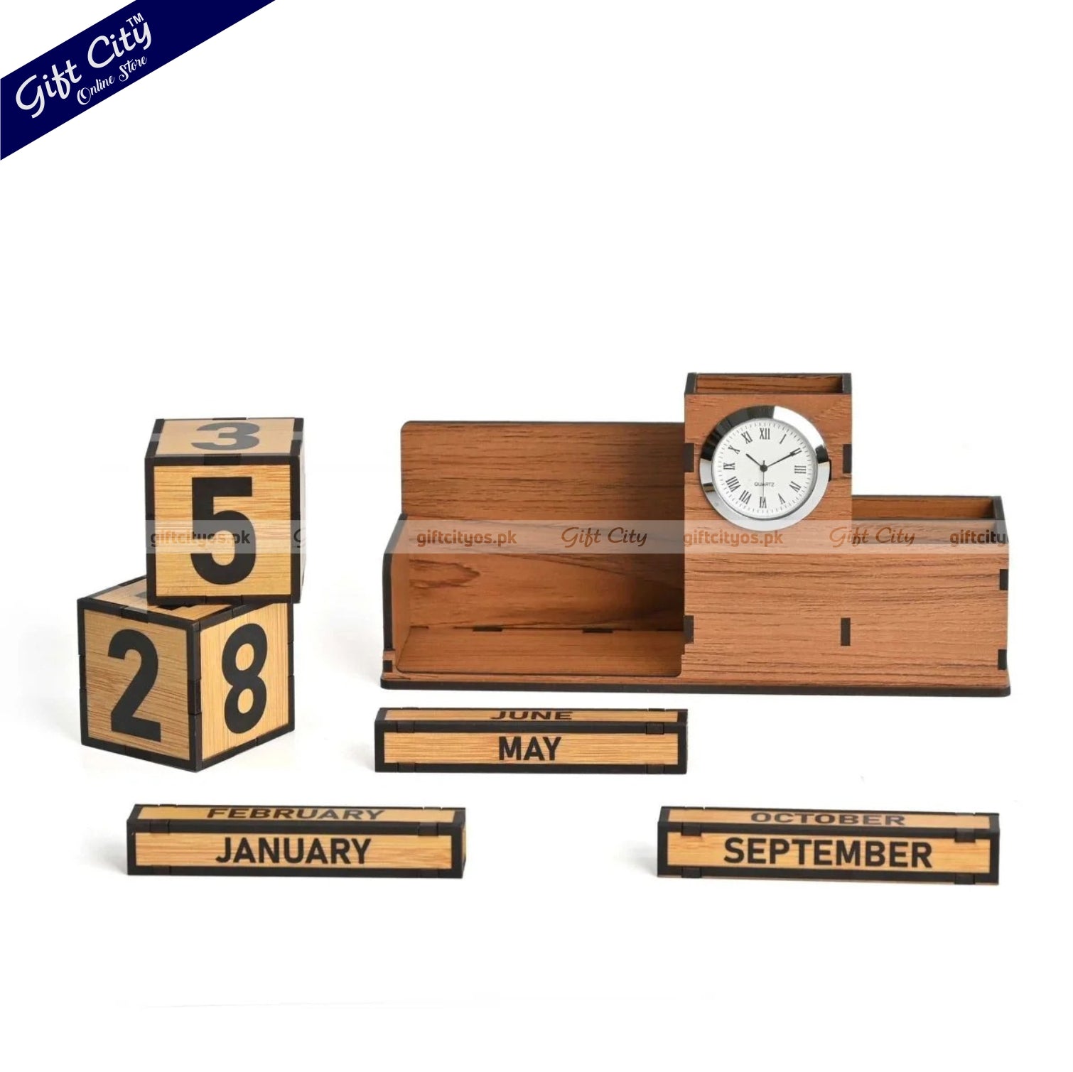 Featuring a lifetime Wooden Block Calendar, a Mini Analog Clock, and ample Storage Space for pens, markers, and office tools, this multifunctional piece brings harmony and class to any workspace. Its handcrafted wooden design adds a rustic yet modern aesthetic, making it a smart gift for professionals, corporate teams, or anyone who values a tidy desk.