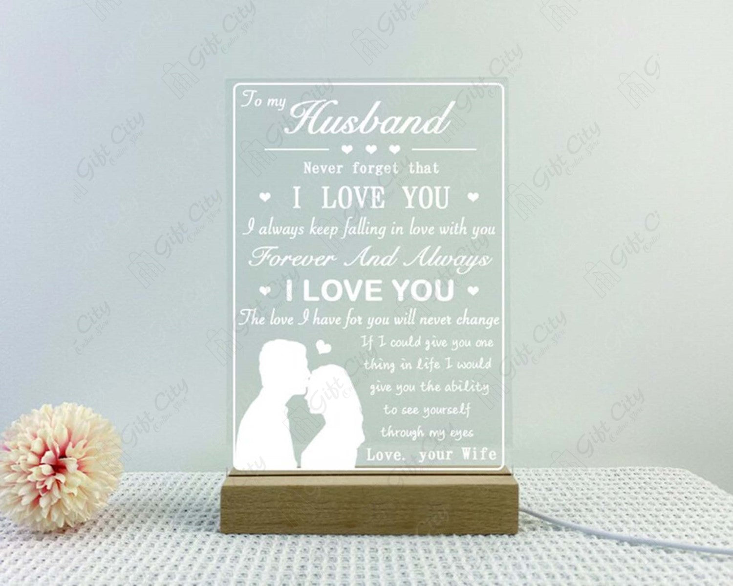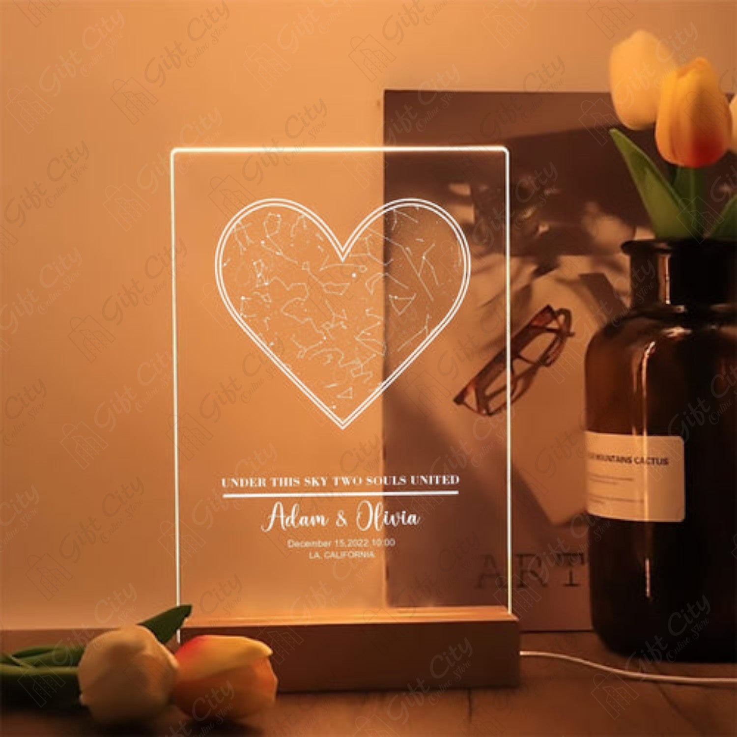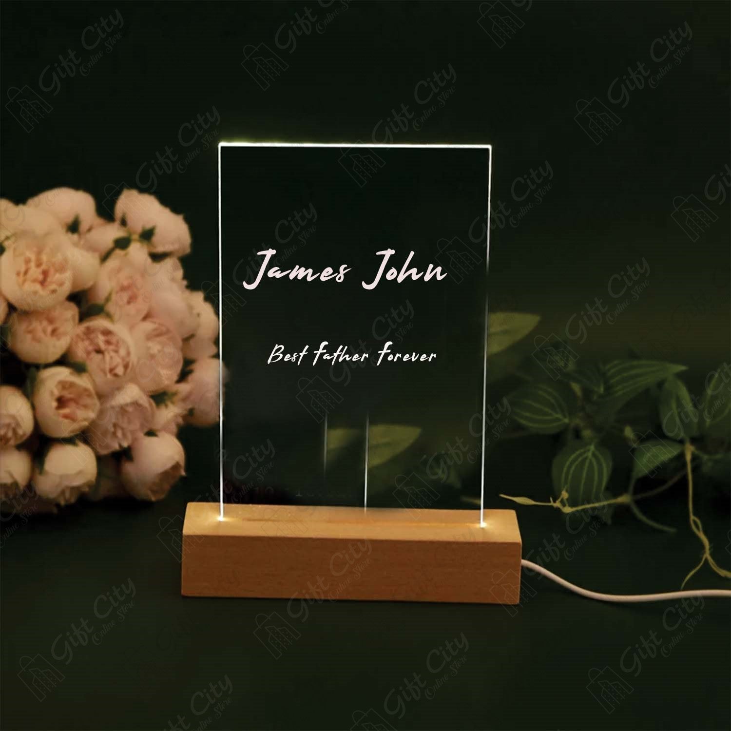 Gift City Custom 8-Inch Rectangle Shape Decorative Acrylic Lamp with Acrylic Base - 220V, 3D Light Lamp - Best Gift for Weddings