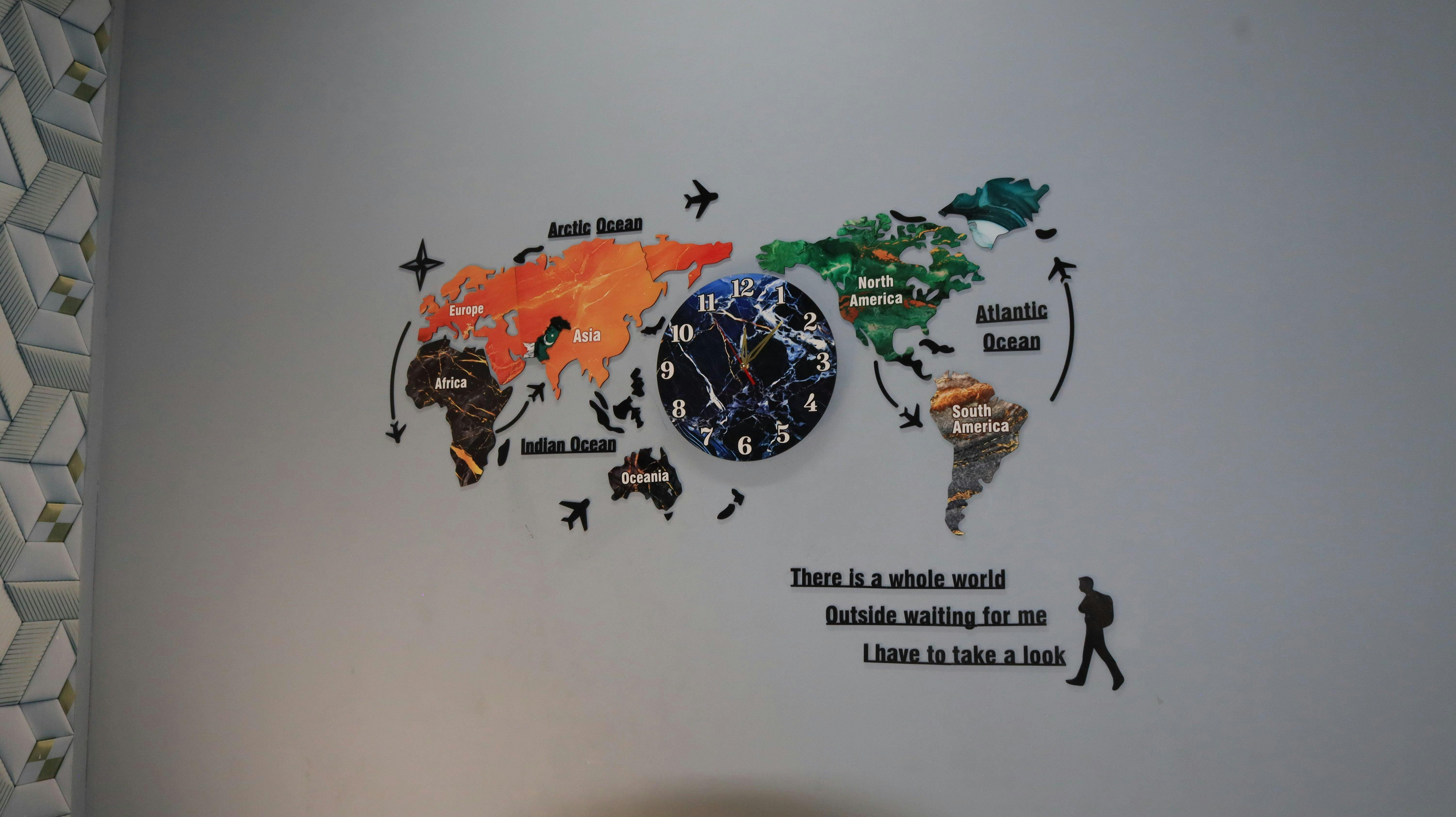 🕒 Decorative & Functional: Stylish clock combined with an educational world map