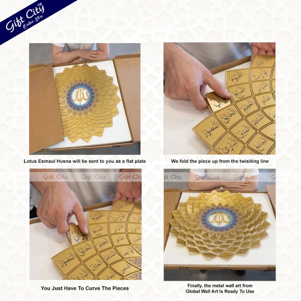 Gift City Presents 3D Metal Asma Ul Husna Islamic Wall Hanging Art - 99 Names of Allah | Elegant Quranic Decor | Arabic Calligraphy | Spiritual Home Decoration