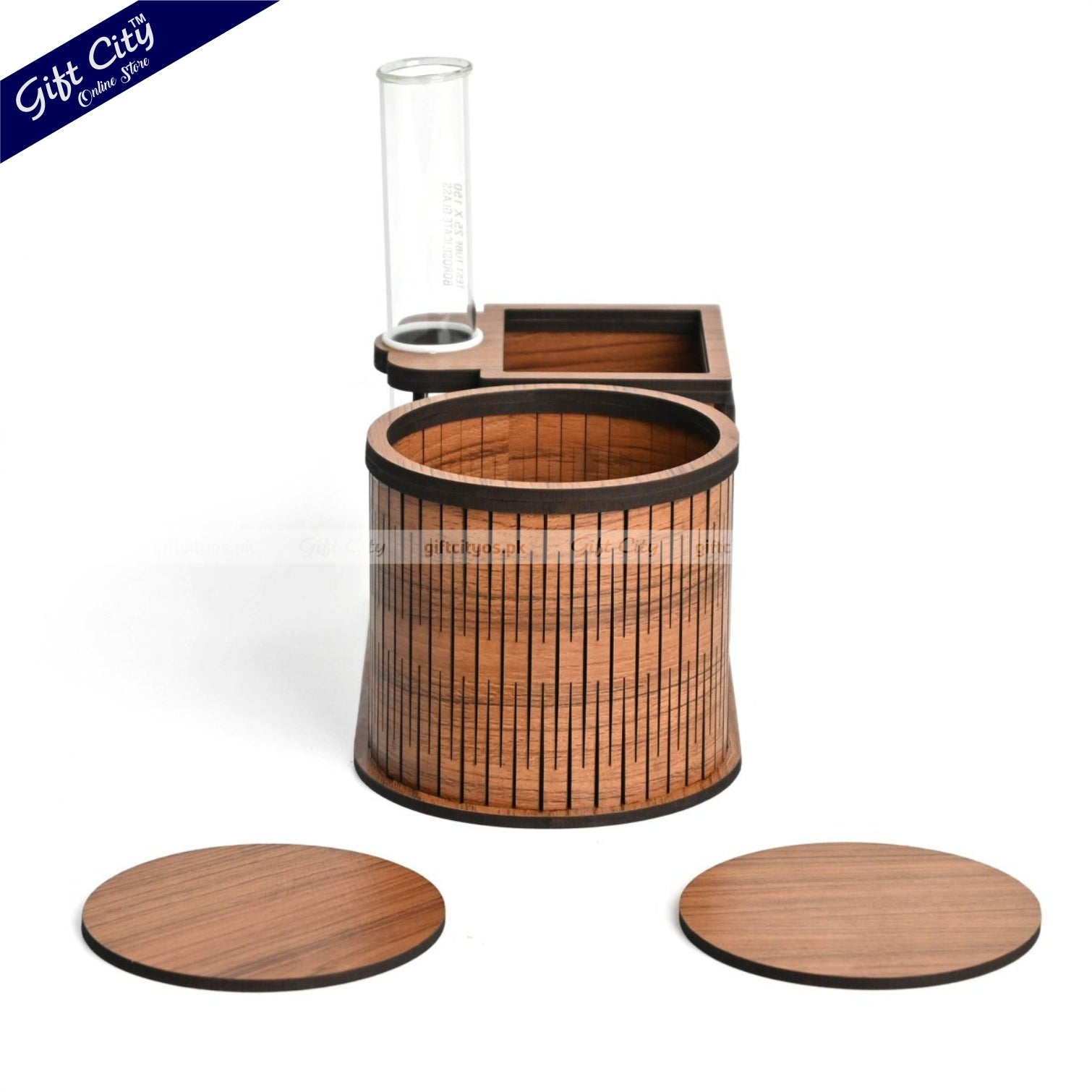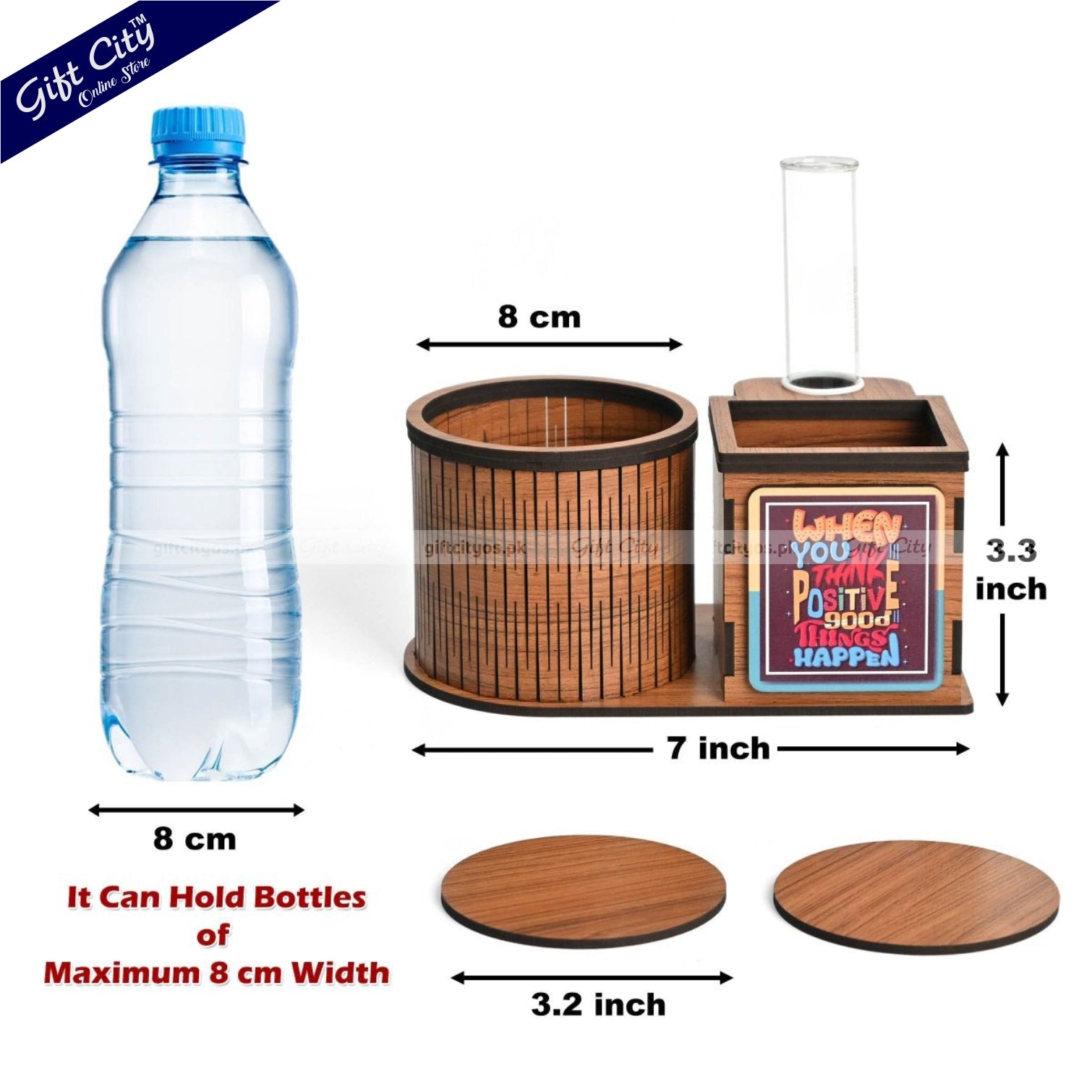 Multifunctional Wooden Desk Organizer – Bottle Holder | Planter | Pen Stand | Customizable