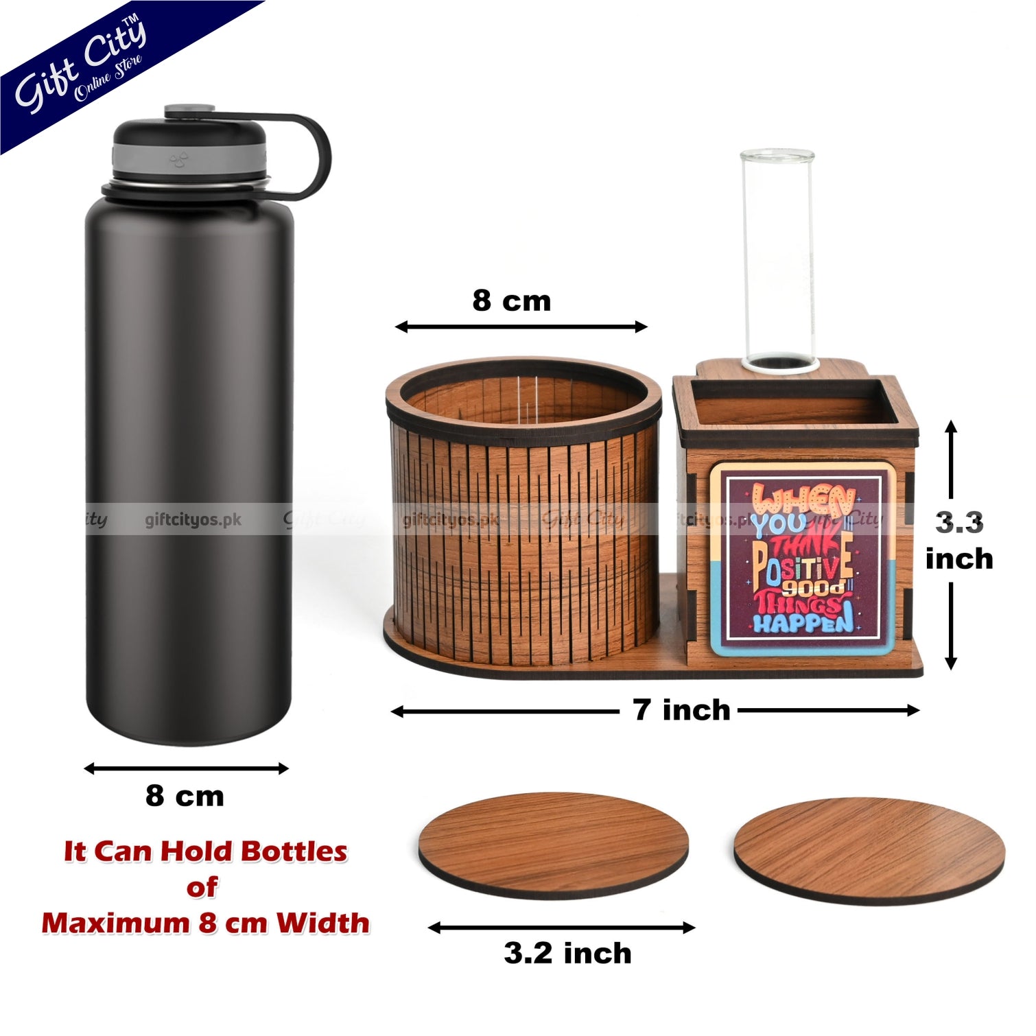 - Bottle Holder Diameter: 8 cm (Holds bottles up to 8 cm wide)