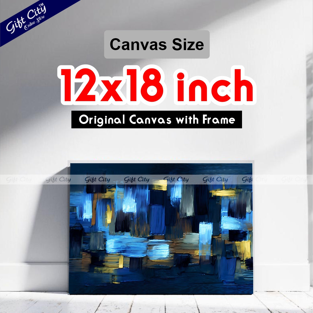 This modern UV-printed canvas features a bold abstract design with rough brushstrokes. The dark blue and yellow accents create a striking contrast, adding a contemporary, artistic touch to any space. Perfect for enhancing the look of your living room, bedroom, or office with a unique aesthetic.