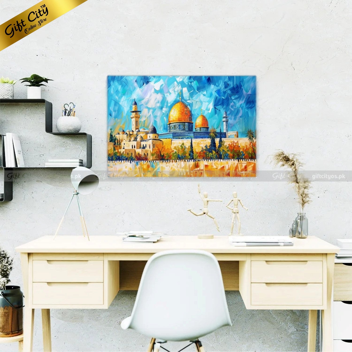 Enhance your space with this stunning UV Printed Oil Painting Canvas featuring the Dome of the Rock in vibrant colors. Perfect for home, office, or gift decor, this high-quality artwork offers a modern touch with multiple sizes available to fit any setting.